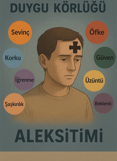 Aleksitimi, bireyin duygularını tanıma, anlama ve ifade etme konularında zorluk yaşaması anlamına gelir (Taylor, Bagby & Parker, 1997). Bu bireyler genellikle ne hissettiklerini adlandıramazlar ve bu nedenle duygusal tepkileri anlamlandırmada zorlanırlar.